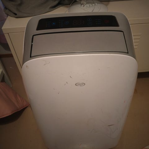 Kompakti rullilla liikkuva Argo Oscar AMR06B jäähdytyslaite.Yksikertaiset toiminnot ja painikkeet. Mukana tulee letku ja käyttöohjeet, jotka helpottavat käyttöä. Laitteessa on näkyviä käytön jälkiä, kuten naarmuja ja pölyä. Painikkeet ovat kuluneet, mutta toimivat edelleen.