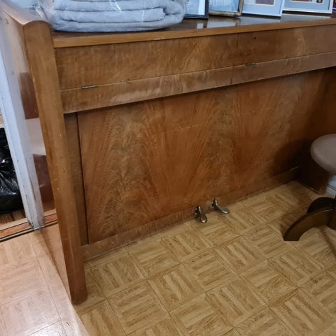NOPEIMMALLE HAKIALLE. Piano kohtalaisessa kunnossa. E kosketin toimii heikosti. Sisältää säädettävän pianotuolin.