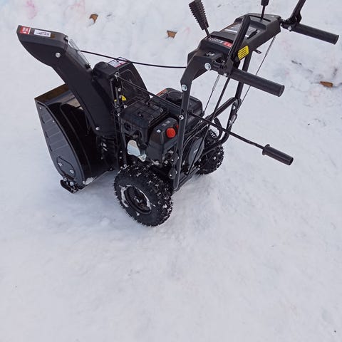 Juuri ja juuri sisäänajettu 11 hevosvoimainen lumilinko ketjuilla.