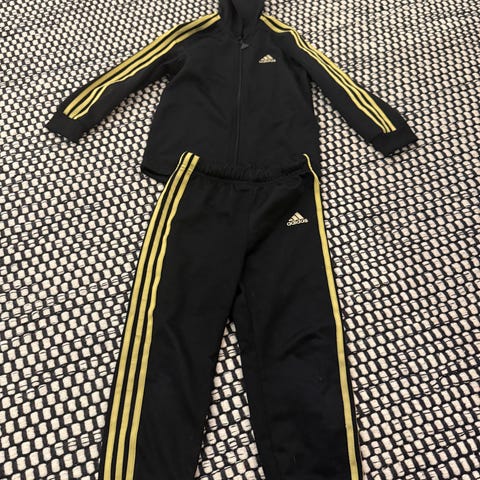 Myydään hyväkuntoinen Adidas verkkapuku, koko 98. Väri musta, kultaiset raidat. Hupullinen takki. Hieman nukkaa on, mutta ehjä ja siisti.