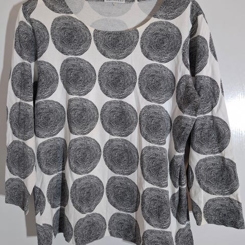 Myytävänä hyväkuntoinen paita. Materiaali: puuvilla 95 % ja 5 % elastaani. Mittoja: kainalo-kainalo = 48 cm ja pituus = 64 cm. Toimitus onnistuu Kouvolaan ja lähialueelle. Postikulut ostajalle.