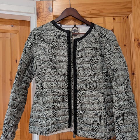 Colmar M muu toppaliivi valkoisena, valmistettu 90% ankan untuva ja10% ankan höyheniä . Naisten Italia koko 48 joka vastaa mielestäni M kokoa