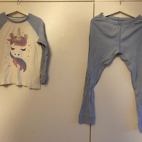 Myydään 2-osainen pyjama (housut ja T-paita). Merkki House. Koko 120. Vaaleanpunainen yksisarvis paita ja liilat housut. Tavallista käytön kulumaa, ei mitään erikoista. Postitus / toridiili tai nouto Espoon kaupunginkallio/helsingin Töölö.