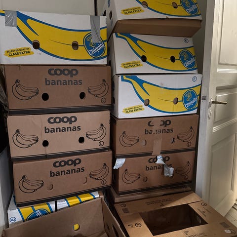 Paljon banaanilaatikoita ja 3kpl isompia pahvilaatikoita