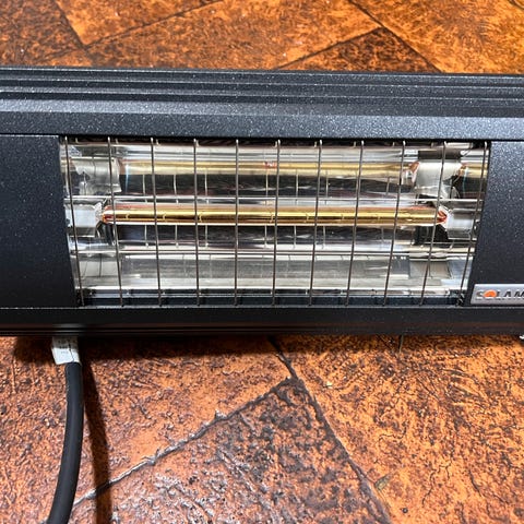 Dimplex Infrared-lämmitin musta, jossa kolme infrapunalamppua. Lämmitin on suunniteltu sisäkäyttöön ja sen materiaali on metallia ja muovia. Laitteessa on virtajohto ja se soveltuu tilojen lämmittämiseen.