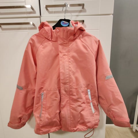 Myydään POP 128 kokoinen kuoritakki eli välikausitakki. Yleisilme siisti, takki hyväkuntoinen ja vedenpitävyys tallella. Marjapuuron värinen. Pientä kulumaa mm. hihansuissa, näkyy kuvissa. En bongannut näkyviä tahroja.