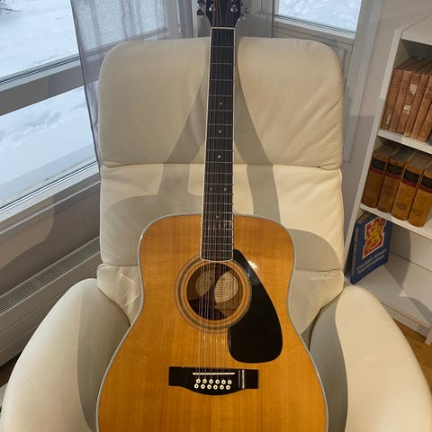 Kauan aikaa sitten ostettu kitara, joka on kuitenkin jäännyt vähäiselle käytölle, koska 12-kieliset kitarat ovat aika niche. Muutaman kerran olen keikoilla soittanut ja on kyllä lumonnut yleisön.