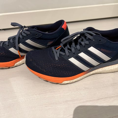 Adidas juoksukengät, koko 42. Väri musta ja valkoinen. Soveltuvat juoksuun. Kengissä on mustavalkoinen ulkonäkö ja ne on valmistettu juoksuun sopivaksi.