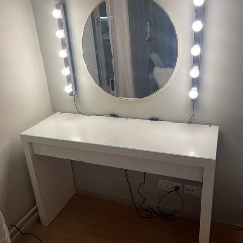 Ikea malm meikki/työ pöytä lasilla.