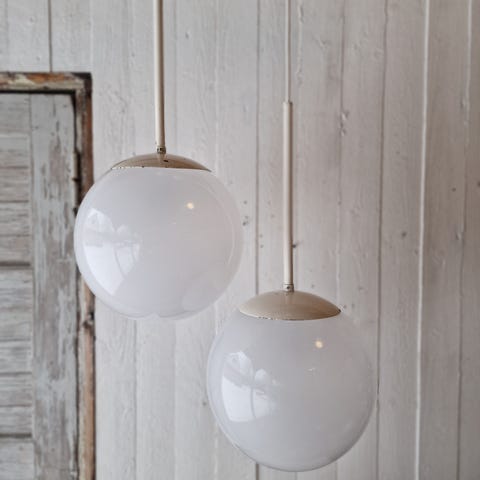 Hakusanat: Valaisin pallovalaisin pallolamppu funkkis retro design suunnittelija 80-luku 70-luku retro vintage sisustus design nostalgia valaisin lamppu valo valkoinen opaalilasi pallo lasi opaalilasi orno stockmann