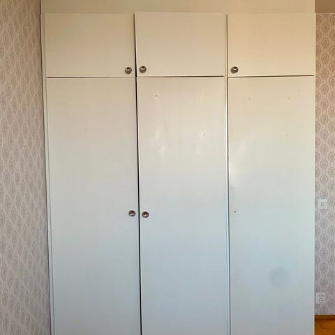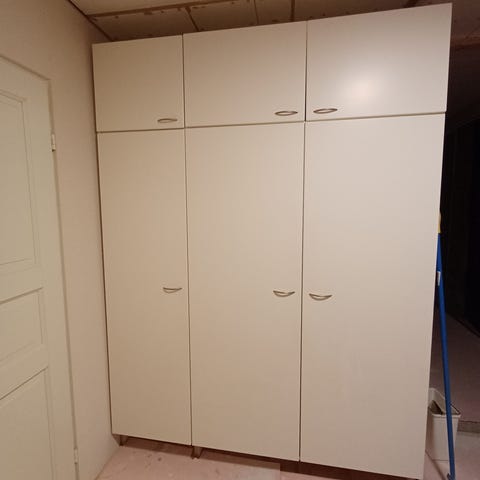 2 hengarikaappia ja 3 hyllykaappia. Remontin alta pitäis saada pois.