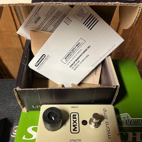 Mxr boosteri käy ja toimii, ei rutinoita. Tarraa pohjassa.
