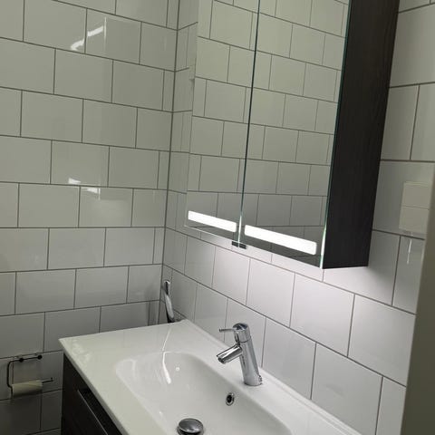 Kylpyhuoneen allaskaappi peilillä ja valaisimella