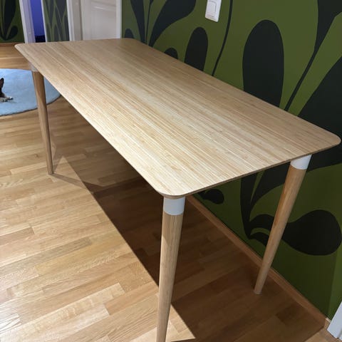 Ikean bambu Anfallare pöytälevy ja säädettävät metalliset Olov-jalat.