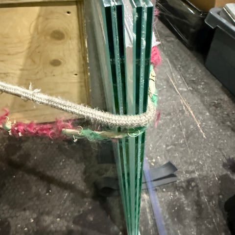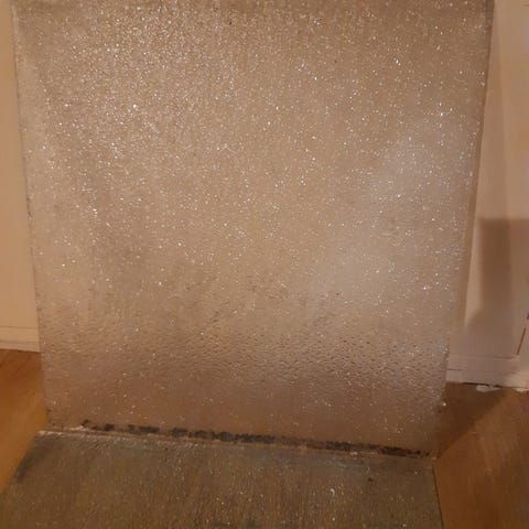 5kpl paksuja lasilevyjä. Karkaistua. Olleet ns. Liukavana lasiseinänä kiskolla. Lasit nyt irroitettu ja niitä on viisi kappaletta. Mitat leveys 63,5cm 238 pelkän lasin mitta jos irrottaa alumiinikehykset päistä ja lasin vahvuus se 1cm. Yksi painaa arviolta noin 35kg. H.50€ /kpl per lasi