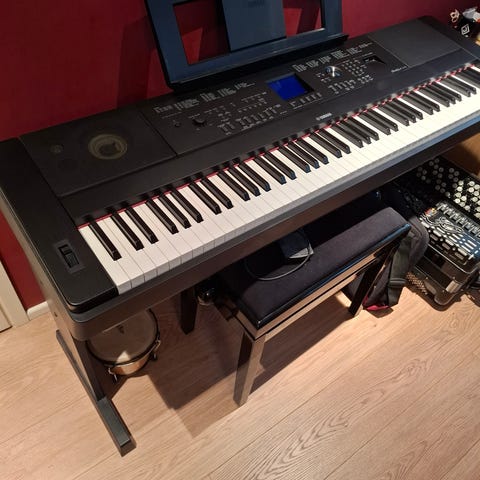 Erinomainen kosketinsoitin, jossa on laaja valikoima erilaisia efektejä ja ääniä. 88 kosketinta, kaiutinlähtö, kuulokeliitäntä, USB-liitäntä. Mukana pedaali, pianotuoli ja käyttöohje. Nouto.