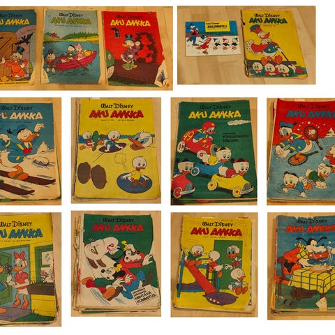 Aku Ankka Vuosi 2018: Vuosikerta nrot 1–27, 29–52 (sis. 52b Joulumanteli). Nro 28 puuttuu