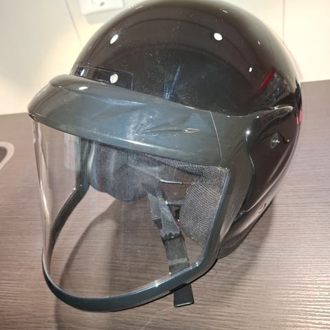 Nahkainen suojakypärä, suunniteltu suojaamaan päätä. Kypärä on naisten M-kokoa ja soveltuu muuhun urheilukäyttöön tai suojavarusteeksi.