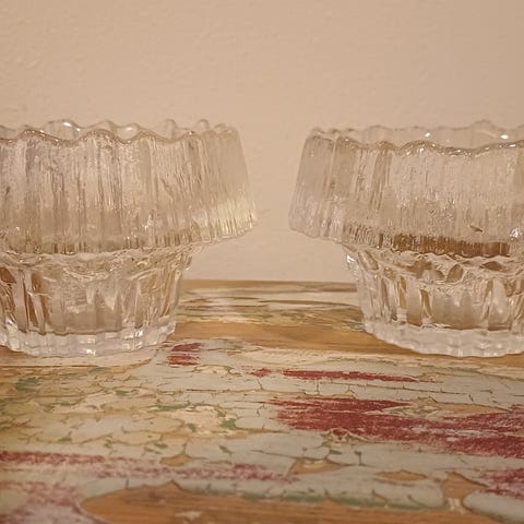 2 kol vanhaa Iittalan lasia. Toinen maljakko ja toinen kynttilänjalka .
