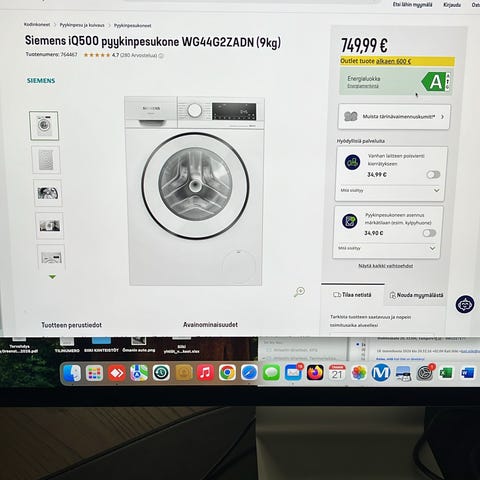Uuden veroinen ja siisti Electrolux TimeCare 500 edestä täytettävä pyykinpesukone, useita pesuohjelmia. Pesukoneen kapasiteetti on 1-8 kg. Haalea sinertävä tahra päällä, näkyy kuvassa. Vain nouto Hyhkystä, tai kuljetus (ovelle) mahdollinen Lielahti-Tampereen keskusta-Hervanta välillä VAIN su 1.2.2026. Laite ollut käytössä tähän asti. Ovh. 350€, käytössä 2 vuotta