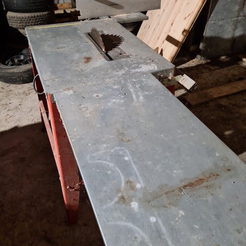 Toimiva pöytäsaha + moottori + lisävaraterät ja ohjaimet
