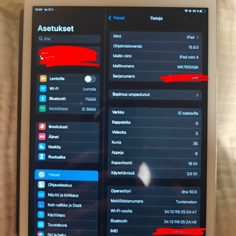 Apple iPad Air 2 64gb varaosiksi tai korjattavaksi.