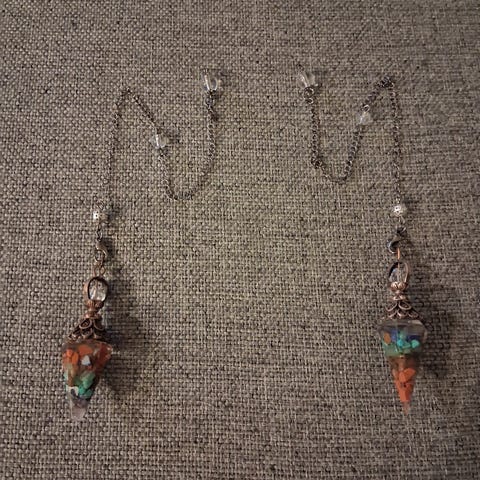 Tämä on metallinen seitsemän chakran riipus, jossa on luonnonkiviä.
