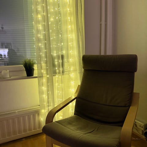Hyväkuntoinen nojatuoli. Jaloissa pientä jälkeä, mutta huomaamaton yleisilmessä. Jyskin Udsbjerg malli, sävyssä harmaa.