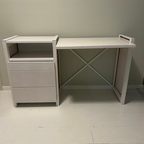 Kulmikas työtaso, jossa vihertävä pinta ja tilaa sekä tietokoneen ruudulle että näppäimistölle. Työtaso kiinnitetään Lundia-tikkaisiin, jotka kummaltakin puolelta ovat 30 cm syviä. En tiedä pystyykö kiinnittämään eri syvyisiin tikkaisiin. Sopii kotitoimistoon tai työtilaan. Työpisteen kunto on ok. Ei enää tarvetta itsellä. Käy myös isokokoisemmalle, litteälle tietokoneen näytölle.
