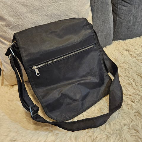 Etupuolen ulkotaskussa vetoketju, takana toinen iso avoin tasku. Sisällä kahdeksan erikokoista osastoa ja kaksi muovitaskua papereita yms varten. Molemmissa sivuissa kapeat taskut puhelinta ja avaimia varten sekä heijastin nauhat.Mitat: 39cm x 30cm X 15cm