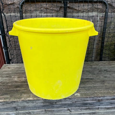 Kannellinen reilunkokoinen saavi tuhkalle. 45cm korkea ja 39cm leveä.
