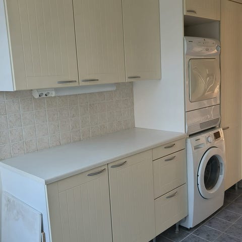 Myyntiin kotimainen kaapisto, joka on alunperin teetetty mittatilaustyönä keittiöön, mutta minä hyödynsin sen olohuoneessa.