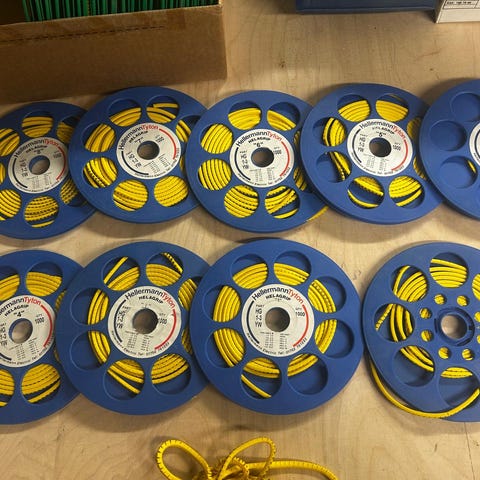 Useita erilaisia johdinmerkkejä. Osa on avattuja ja osa avaamattomia.
