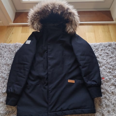 Lämmin kovillekin pakkasille, lämmin Thinsulate vuori. Takissa on irrotettava huppu, jossa irrotettava karvareunus.