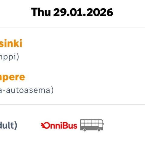 Myydään Onnibussille etulippukoodi, jolla saa 1 hlön yhden minkä hintaisen matkalipun tahansa vain 1e varausmaksun hinnalla eli lipun hinta 0e.