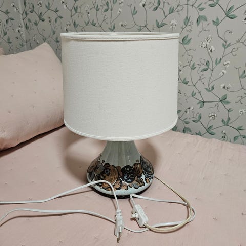 Hieno Valinten vanha sininen pöytävalaisin. Hieno kunto ikäisekseen! Kuvissa näkyy kunto, yksi tosi pieni lommo on toisella puolen kupua, messinki osissa patinaa.