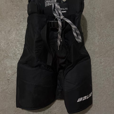 Mustat, muutaman kerran jalassa olleet hyväkuntoiset Bauer Nexus 7000 jääkiekkohousut junior koko S. Sopivat 130-140 cm kokoiselle. Vyötärön ymp. 56-64cm.