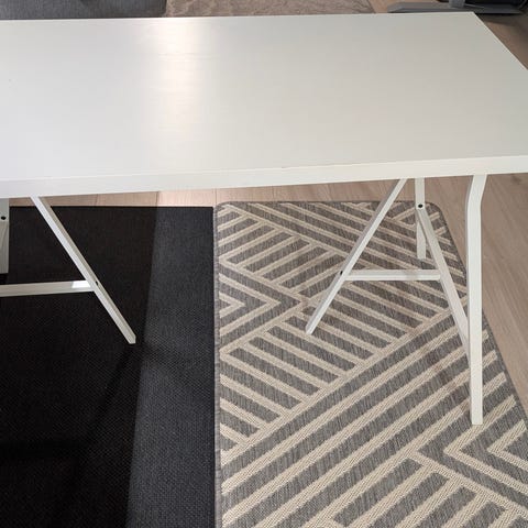 Annetaan uuden pöydän tieltä Ikea Fredde tietokonepöytä. Kaikki osat eivät ole tällä hetkellä kiinni, mutta saa mukana.