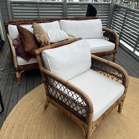 Rottinkisohva ja 2 nojatuolia