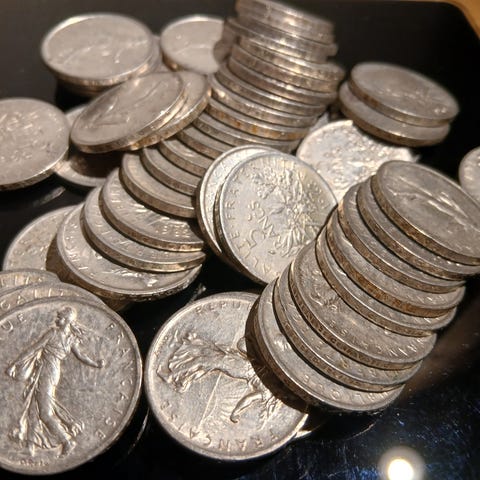 0,5 kg puhdasta hopeaa (0,6 kg kolikoita) – ranskalaiset hopearahat 835/1000