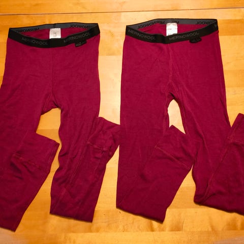 Vasemmanpuoleiset violetit on neulottu ohuesta merinolangasta. Muut on neulottu paksusta merinolangasta.