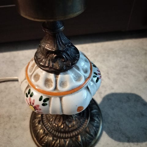 Tyylikäs, vanha pöytälamppu lasikuvulla