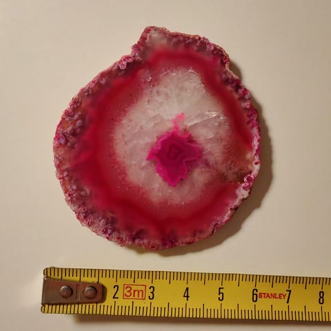 Akaatti kidesytyke, jossa näkyy kiteisiä muodostumia ja luonnollinen ulkopinta. Sopii koriste- tai keräilykäyttöön.