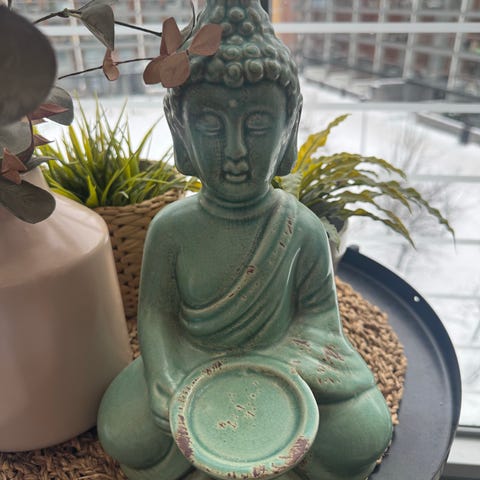 Vihertävän värinen,32cm korkea.keskellä taso tuikulle.