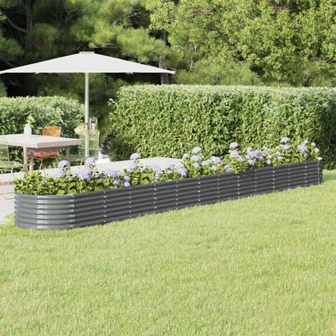 vidaXL Korotettu kukkalaatikko galvanoitu teräs 512x80x36 cm harmaa(sku318939