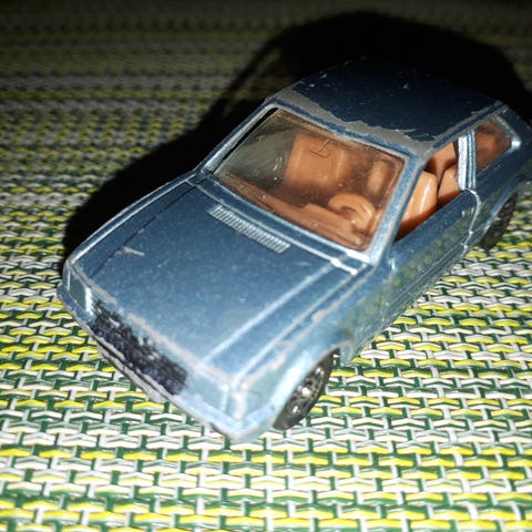 Auto on ikäisekseen ja leikkimäärään nähden hyvässä kunnossa. Pikku naarmuja ja kuvissakin näkyvää kulumaa on siellä täällä. Etuakselin pyörät pyörivät hyvin, mutta taka-akselilla on vähän hankalempaa, ei häiritse kuitenkaan leikkejä eikä paraatipaikalla takanreunalla majailemista! Lisäksi autoa on varmasti kolaroitu satoja ellei tuhansia kertoja sekä varmasti ajettu jyrkänteeltäkin alas rotkoon monta monituista kertaa. Ikää rättisitikalla on arviolta 45-50 vuotta.