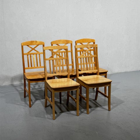 Tuolissa on näkyviä kulumia ja naarmuja, jotka kertovat sen pitkästä historiasta. Puuosissa on havaittavissa kulumista, ja istuinosassa on jonkin verran käytön jälkiä. Yleiskunto on kuitenkin vakaa ja tuoli on edelleen käyttökelpoinen.