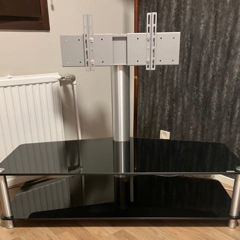Moderni tukeva TV-taso, jossa on kolme vetolaatikkoa ja avohylly. Valmistajaa ei tiedetä, mutta rakenne on erittäin tukeva ja yksinkertainen, sopii monenlaiseen sisustukseen. Metallinen runko, päällä lasitaso ja alaosassa vetolaatikko keskellä ja sivuilla avautuvat lokerot, joissa kaapeliaukot. Saat johdot siististi piiloon taakse reikien avulla.