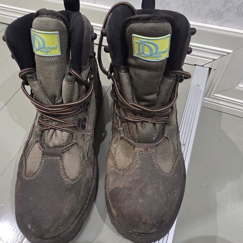 Myydään siistit kahluukengät kokoa 43. Kumiset vaihtopohjalliset.