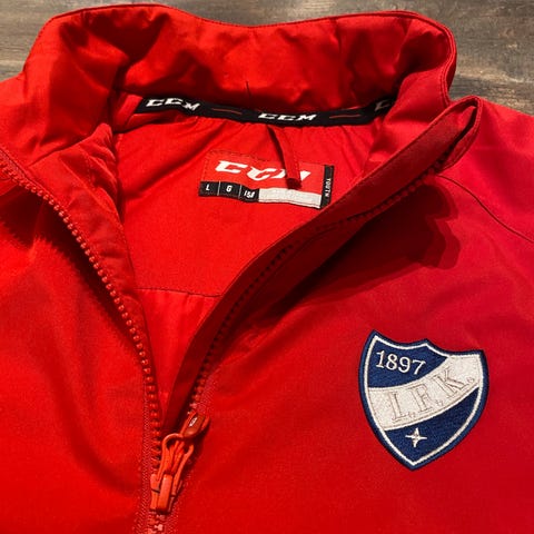 CCM Hifk jääkiekko toppatakki, takki on uuden veroinen ja sitä on käytetty vähän. Sivuilla ja rinnassa vetoketjutaksut.